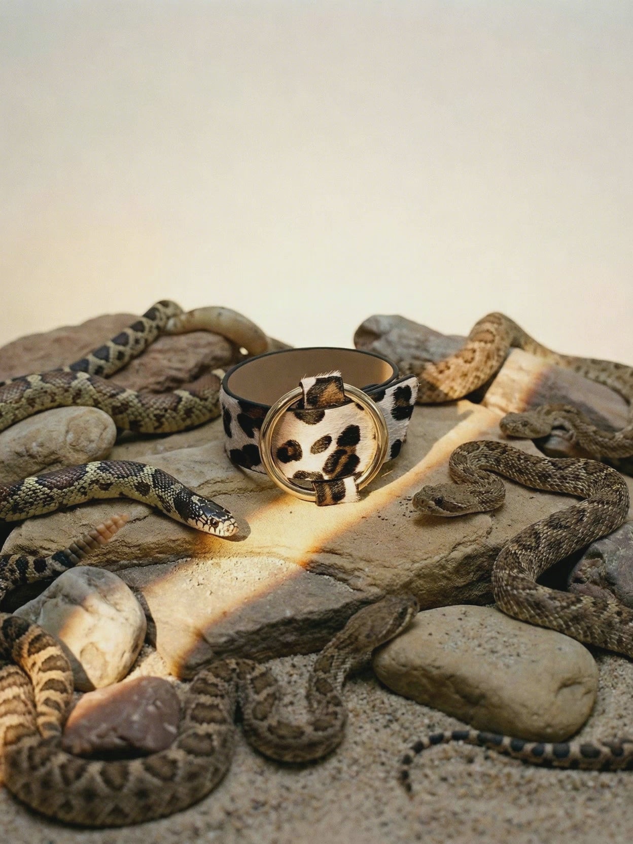 A bold accent designed to define the waist with confidence. This wide leopard-print belt is crafted as a statement piece, combining a tactile, hair-on animal print finish with a polished gold-tone ring buckle. The contrast between soft texture and sculptural hardware creates a striking focal point, instantly elevating dresses, tailoring, and outerwear.